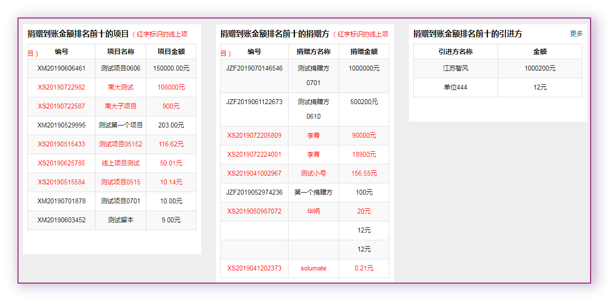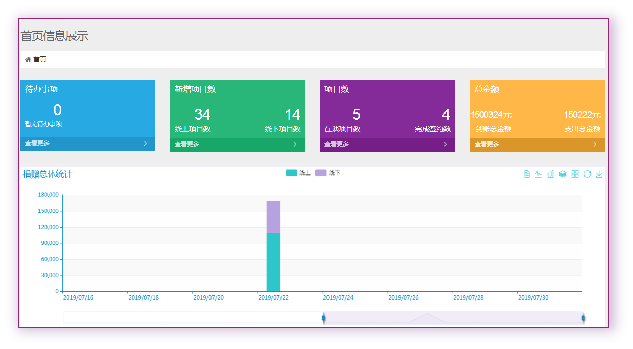 捐贈(zèng)管理系統(tǒng)是集合微捐贈(zèng)、在線捐贈(zèng)為一體的綜合性管理系統(tǒng),主要包含捐贈(zèng)管理、捐贈(zèng)方管理、項(xiàng)目管理、統(tǒng)計(jì)等相關(guān)模塊,可實(shí)現(xiàn)系統(tǒng)數(shù)據(jù)自動(dòng)匹配、關(guān)聯(lián),簡(jiǎn)化業(yè)務(wù)流程,安全快捷支付,數(shù)據(jù)同步整理,項(xiàng)目實(shí)施監(jiān)控,系統(tǒng)預(yù)警提醒、多維度統(tǒng)計(jì)等功能。