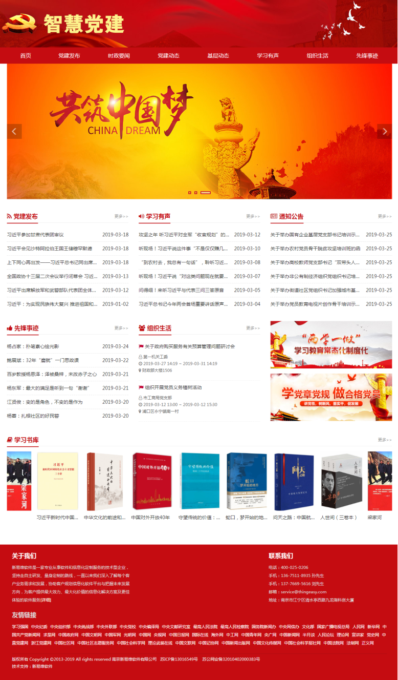 智慧黨建平臺(tái)是結(jié)合“不忘初心、牢記使命”主題教育的黨群建設(shè)交流共享平臺(tái)。平臺(tái)提供黨建信息發(fā)布、時(shí)政要聞、基層動(dòng)態(tài)、學(xué)習(xí)有聲等功能欄目,滿足圖文、音視頻等多種形式資源的呈現(xiàn)以及交流互動(dòng)。